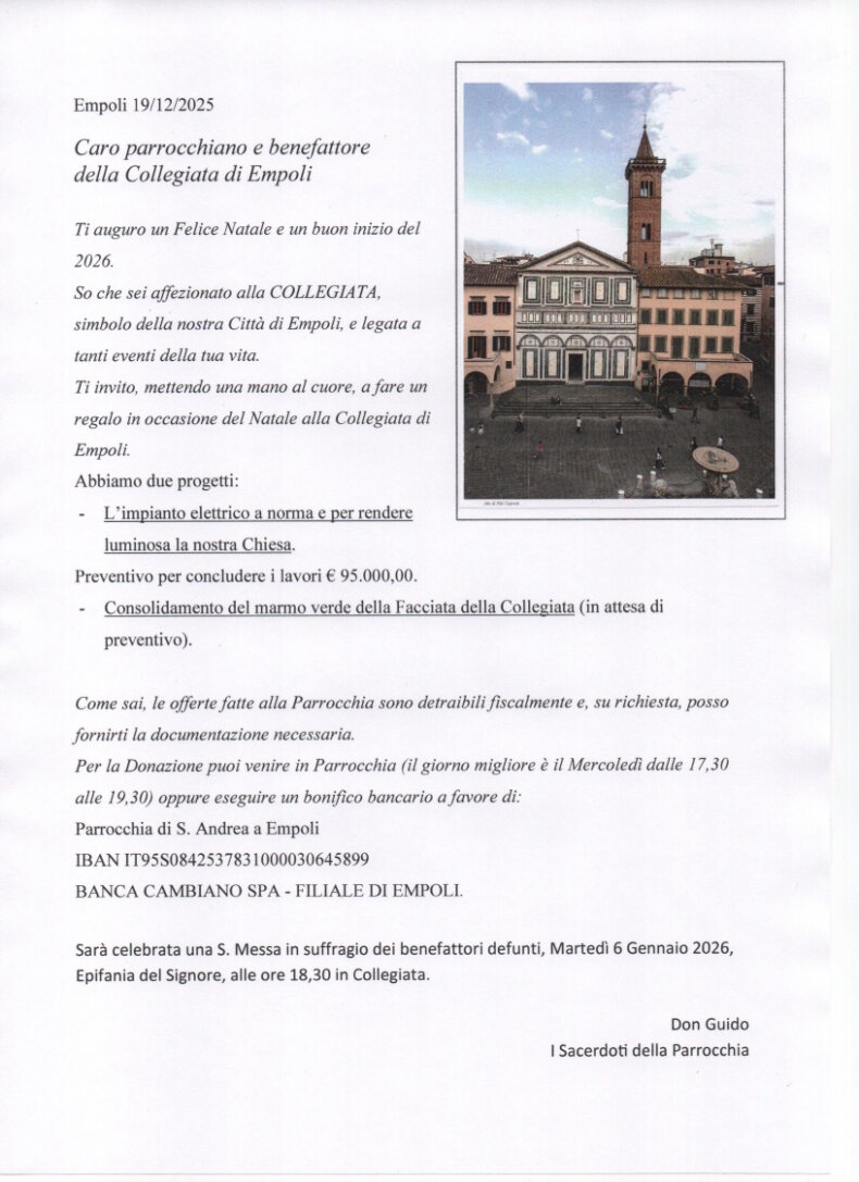 Lettera del Proposto Riflessione sulla tutela del Sagrato della Collegiata